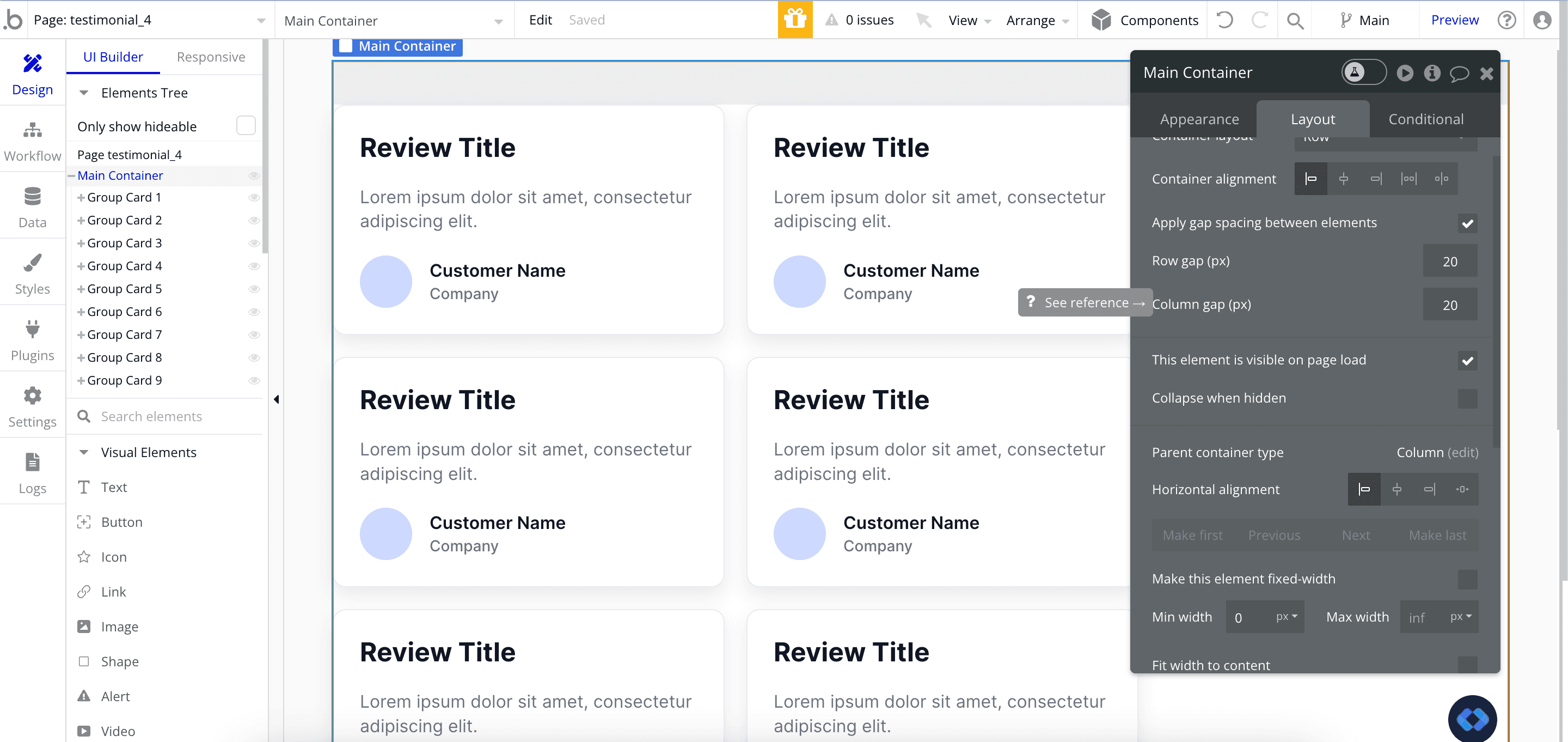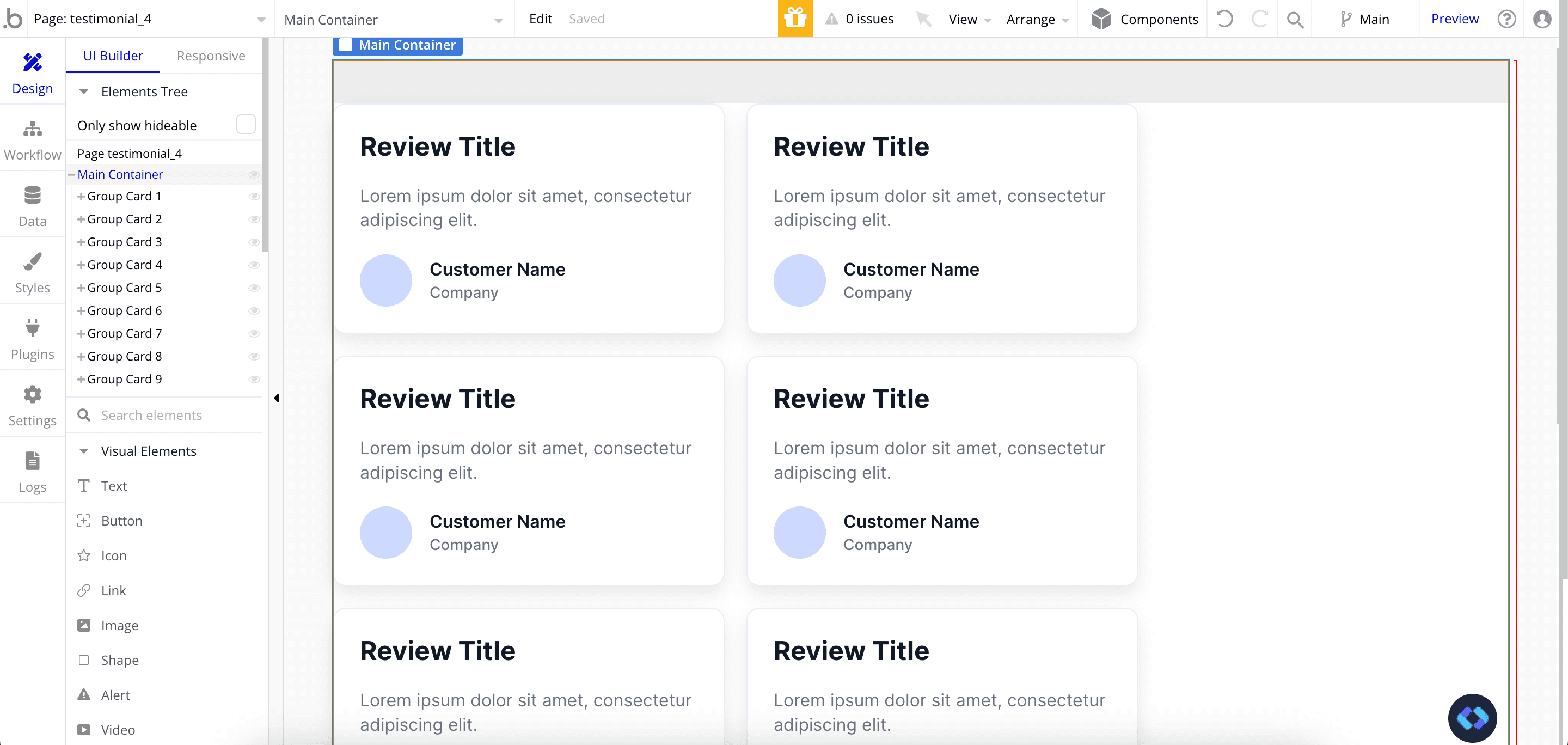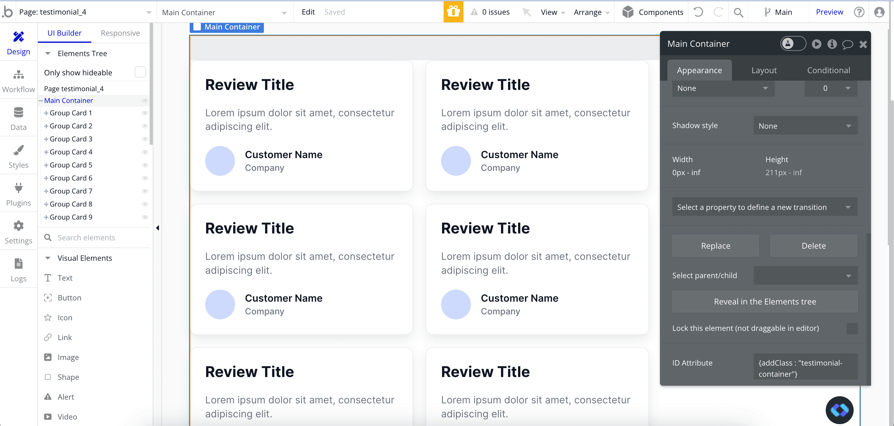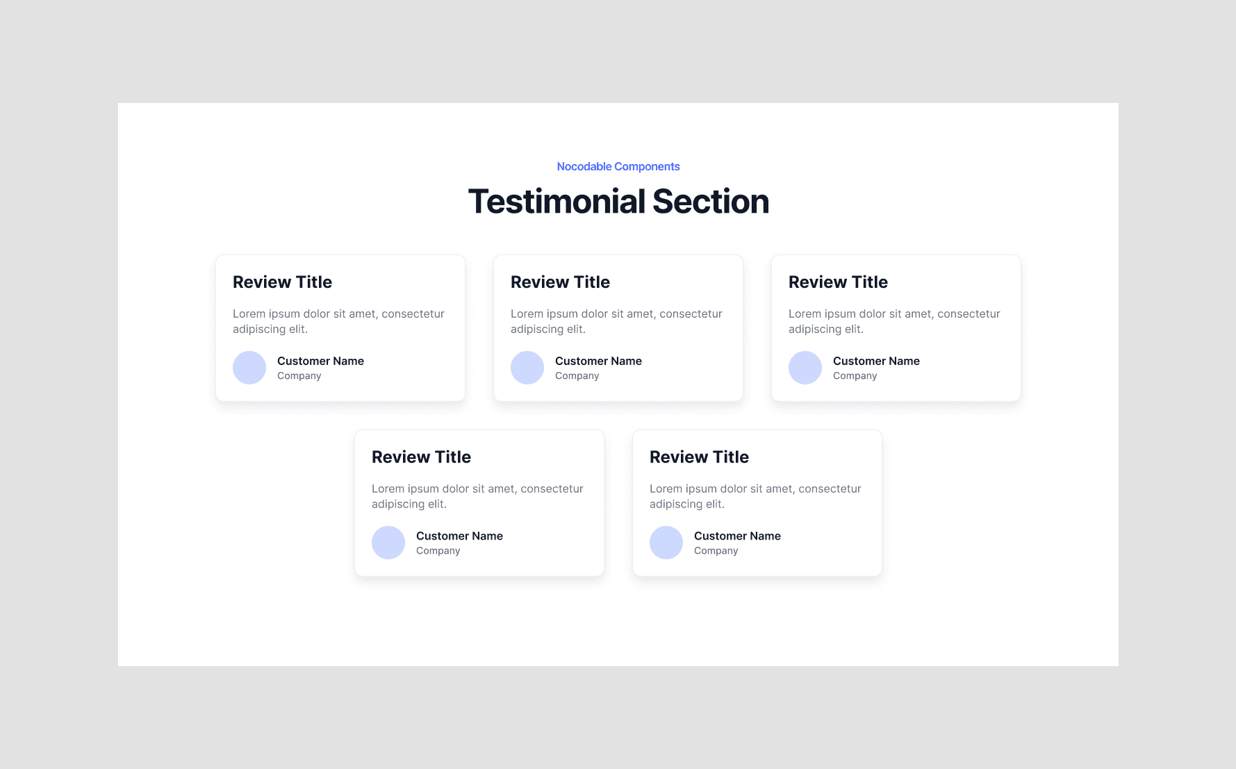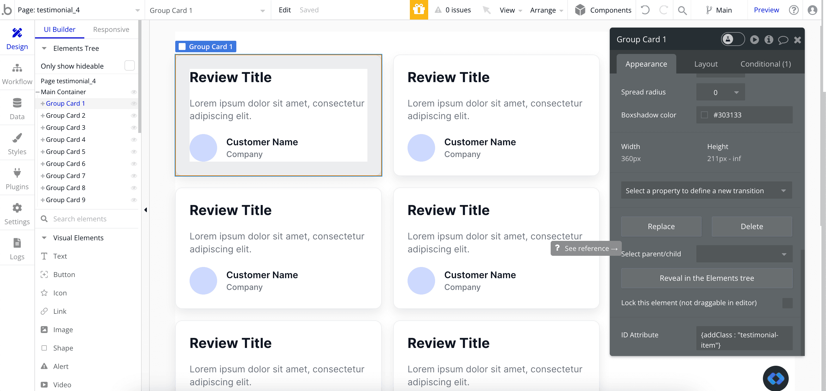 In our example we'll customize some testimonial cards from Nocodable Component's library, but you can use whatever you want like Logos, Features, Images etc...