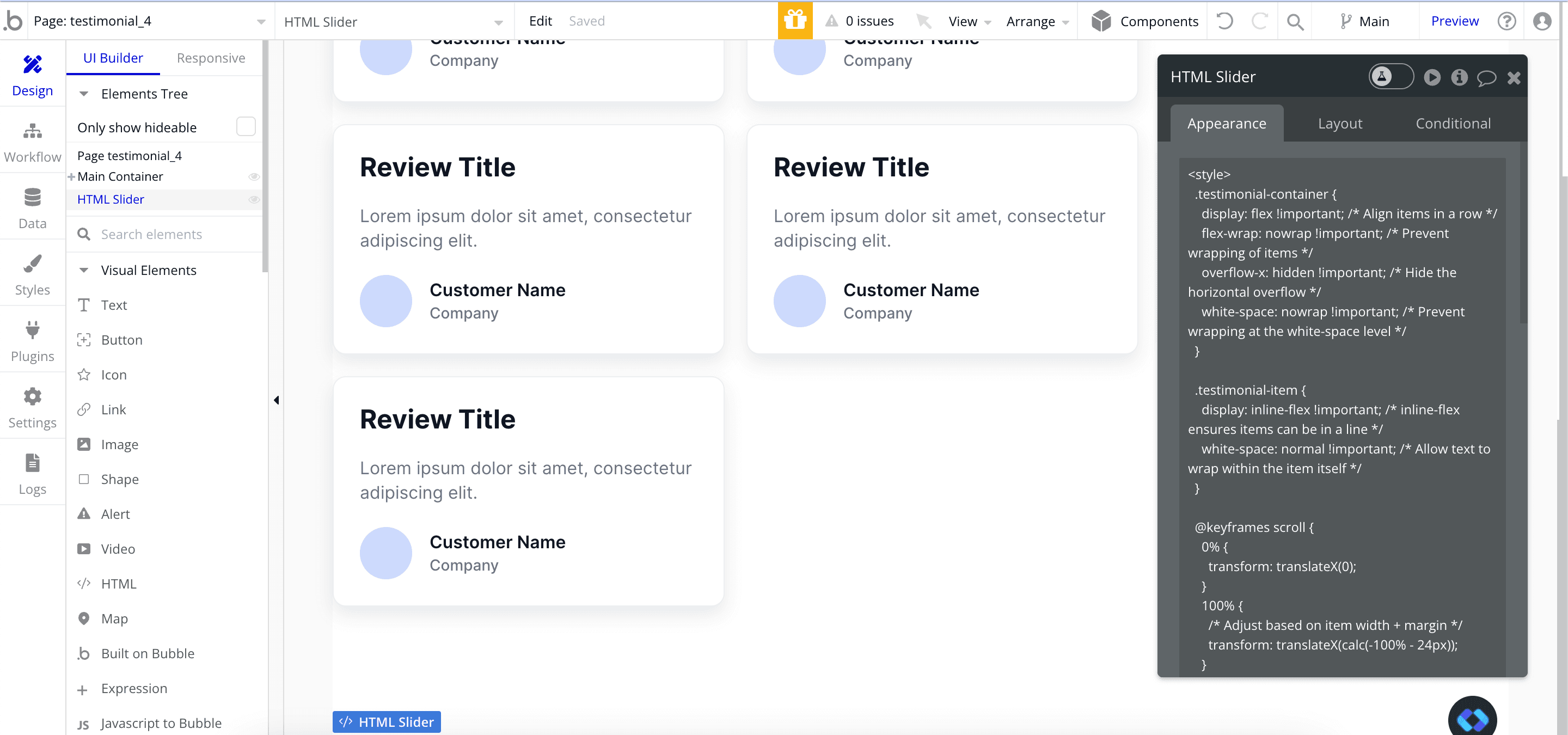 Building an infinite carousel in Bubble.io (for free) - 2025