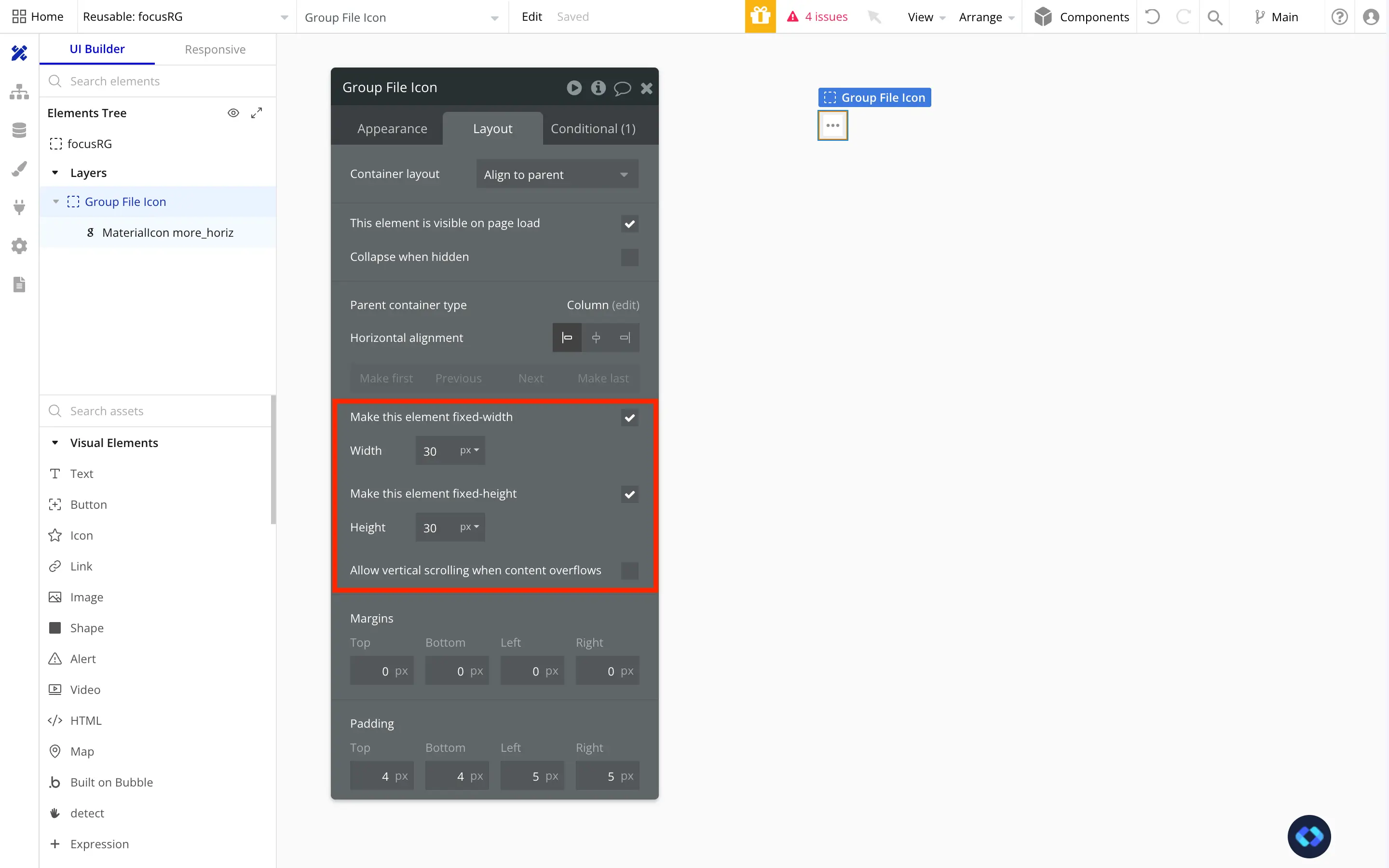Now we have a our Reusable Element setup, we can go ahead and add our contextual menu Icon (which will be the icon that will show our group focus when clicked).