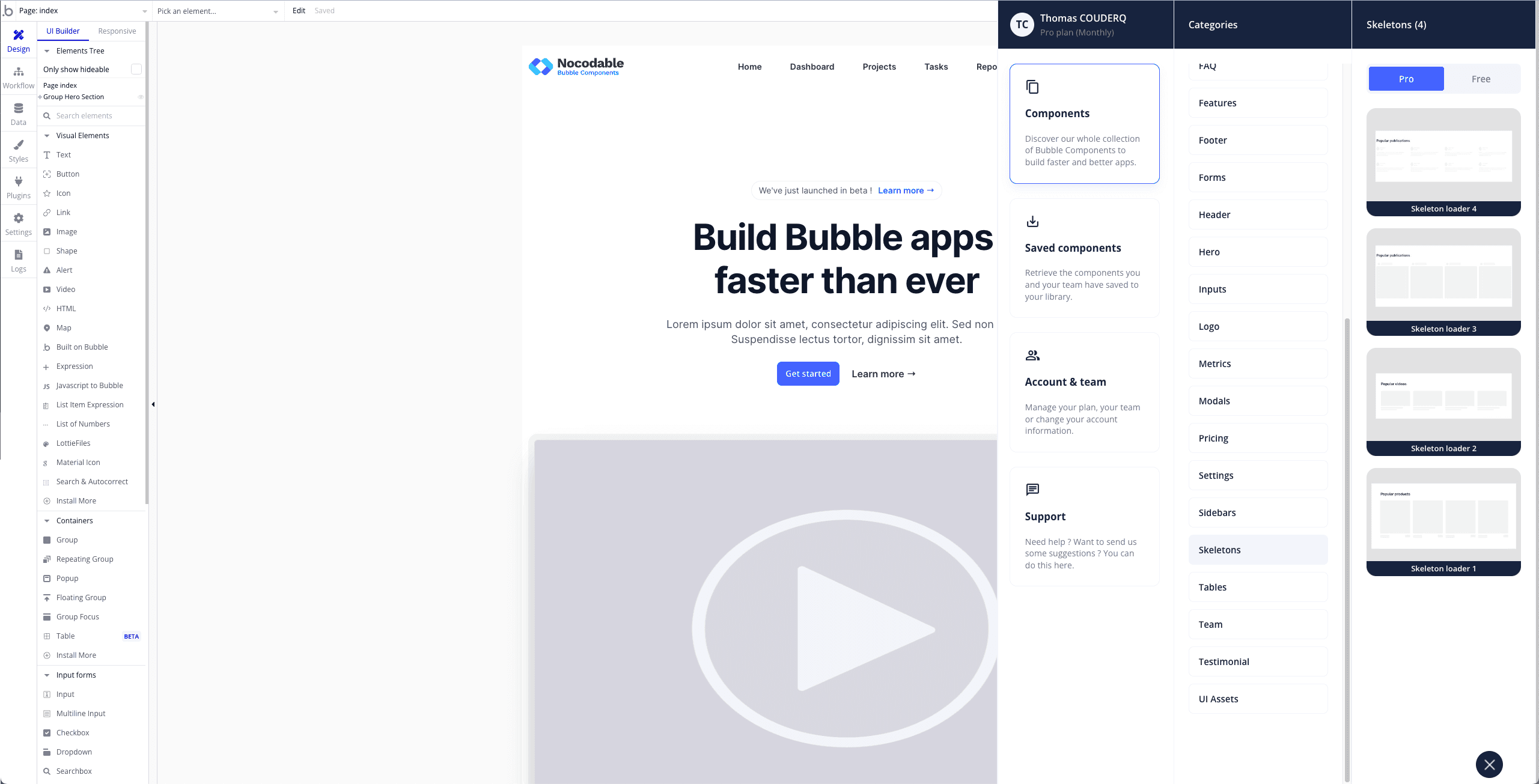 I've been building with Bubble for more than four years now. I've launched several projects (with more or less success). I'm passionate about no code and UI Design, which led me to founding Nocodable Components to help founders and professional Bubble developers build faster on Bubble.