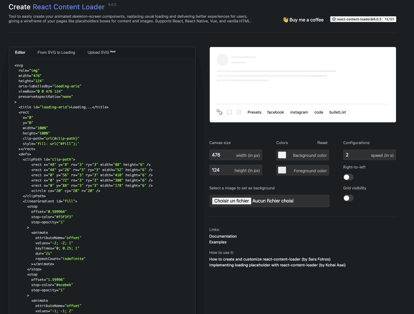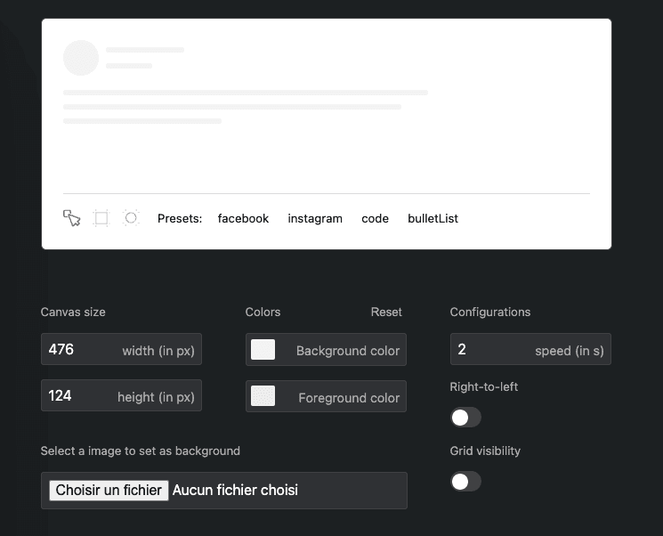 The amazing thing with this editor is that you can either create your own skeleton loader by drag and dropping shapes, or select a premade skeleton from the community :