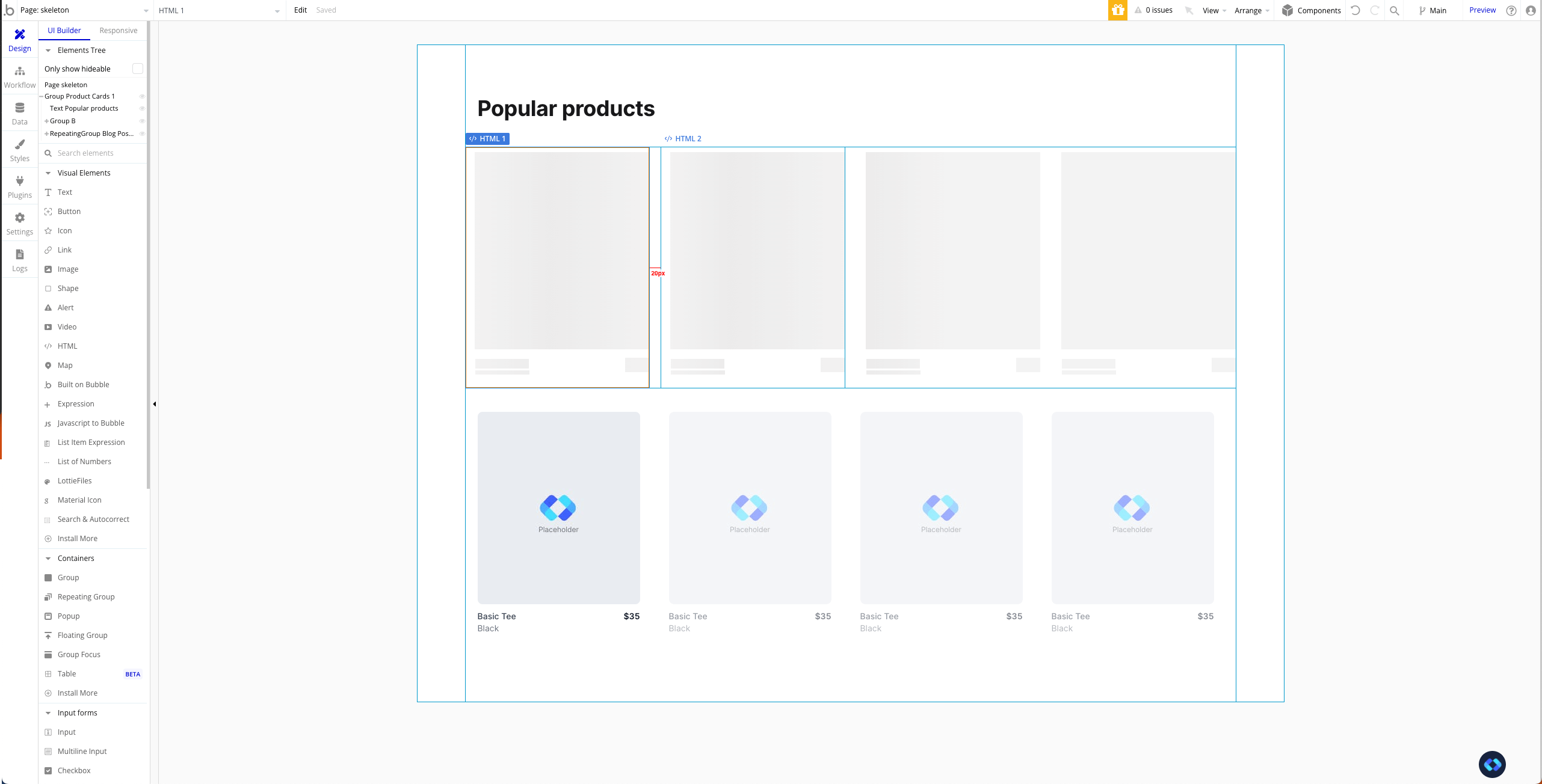 Then, head over to your Bubble app and add an HTML Element to your app.